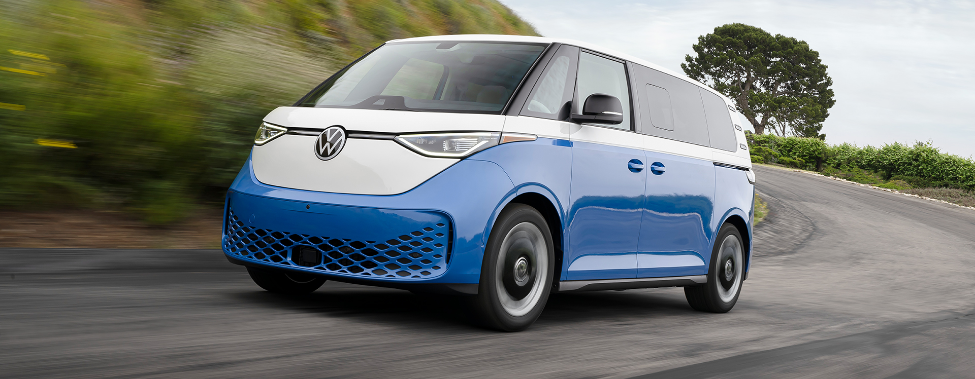 Giant, illuminated VW logo with front light line, classic upright front end, and available two-tone paint celebrate the legendary bus style.