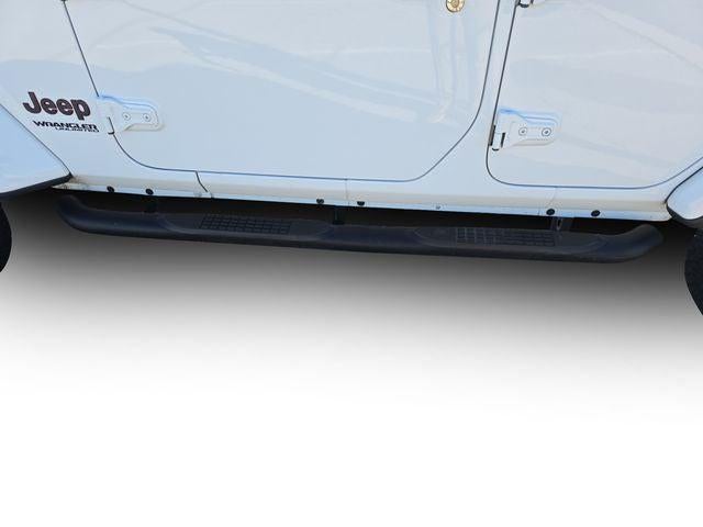The exterior of this Wrangler Unlimited Rubicon commands attention with its bold, white paint and body-color fender flares. Step inside the cabin and you'll be greeted by premium leather-trimmed bucket seats, a leather-wrapped steering wheel, and a host of advanced technology features, including a 8.4 touchscreen display, Apple CarPlay, and Android Auto integration.