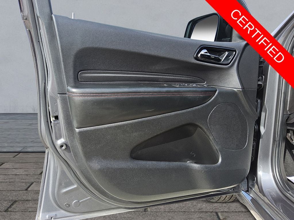 The sleek Gray exterior is complemented by the Blacktop Package, which includes striking Gloss Black badging, 20-inch Black Noise Aluminum wheels, and Satin Black Dodge Tail Lamp Badges, giving this Durango a bold and distinctive look. Step inside and you'll be greeted by a well-appointed interior with features like Cloth Bucket Seats, a Heated Steering Wheel, and a Uconnect 4 infotainment system with an 8.4-inch display.