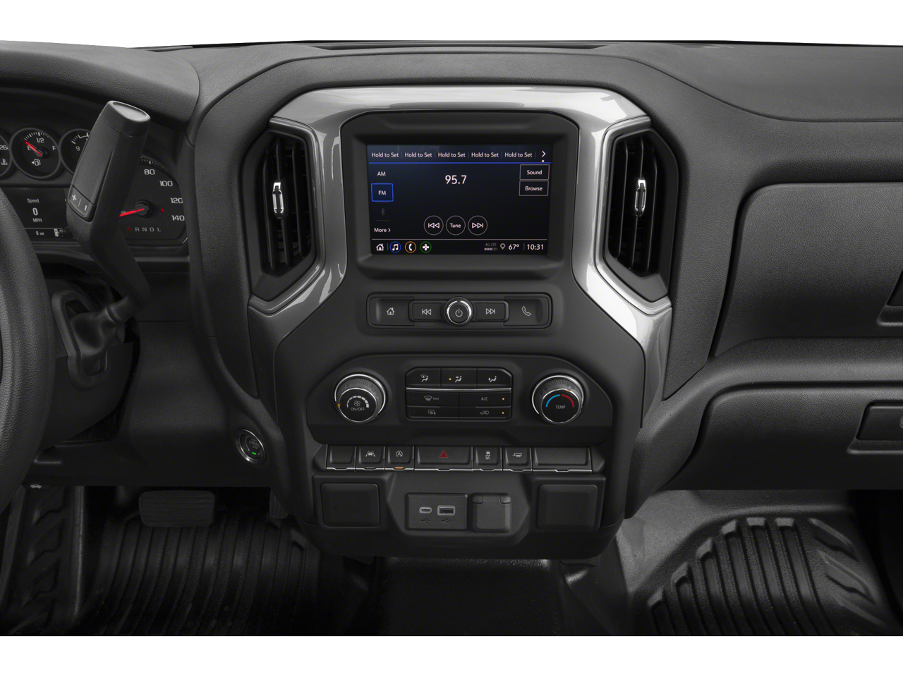 Inside, you'll appreciate the 3.5 driver information display, Apple CarPlay/Android Auto connectivity, and 120-volt power outlets to keep your devices charged on the job site. The roomy 40/20/40 split bench seat provides comfortable seating for you and your crew.